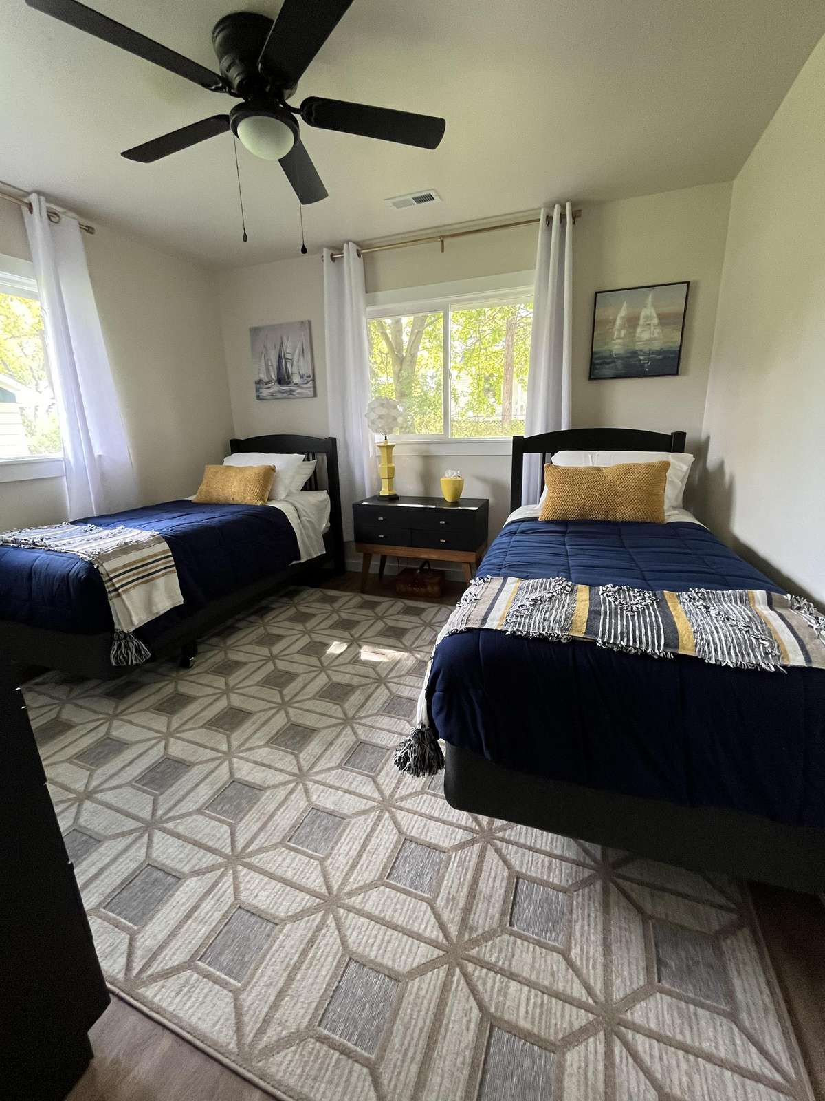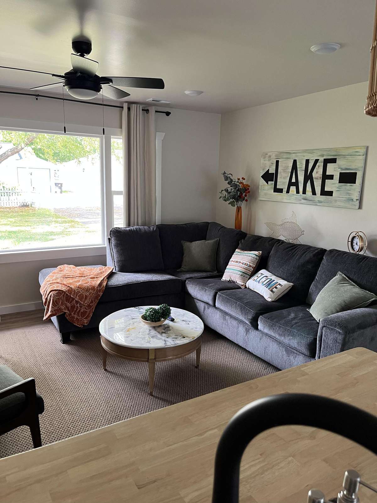 The home offers a freshly remodeled interior with all new furnishings throughout. Bedroom #1 has a queen bed and bedroom #2 has 2 twin beds. For additional sleeping space, the oversized sectional sofa in the living room has a queen pullout bed. The bath and kitchen are all new with everything you’ll need for cooking a stay-at-home meal. If you prefer outdoor dining, there is a gas grill and firepit and plenty of privacy to relax after a long day on the lake.